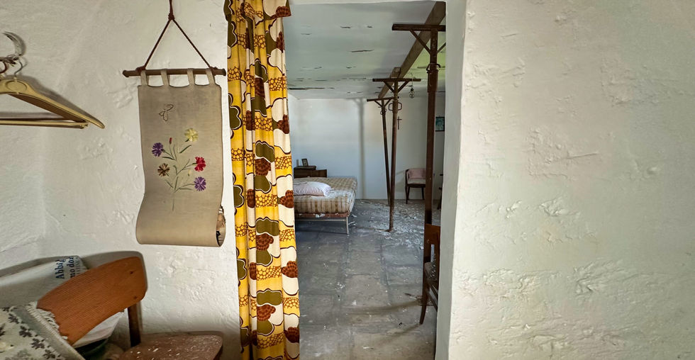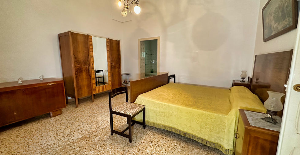 L'ingresso principale dell'abitazione, dal prospetto fulgido e mediterraneo, regala da subito la sensazione di una casa autentica e straordinariamente intima. La sala di ingresso, contrassegnata da un cromatismo che incanta, per via dei pavimenti di graniglia dorata dal sicuro effetto avvolgente, ha il pregio di distribuire intorno a sé tutti gli ambienti domestici all’insegna di un grande equilibrio degli spazi. La stanza che si apre a sinistra, seguita da un comodo bagno, conserva la forza evocativa delle stanze da letto di un tempo, con un approccio minimale che esalta la bellezza eterna delle volte e il tocco sublime della luce levantina, che dilata gli spazi e li trasforma in sentimenti. Sul versante di ponente, invece, la cucina della casa è una piccola meraviglia compositiva, perché la volta stellata, dai lineamenti grassettati, muta nella sua altezza come a voler raccogliere su un palmo di pietra i ricordi intrecciati davanti all’antico focolare. Due porte, aperte sul passato, alimentano il desiderio di frugare nelle tasche della storia e di lasciarsi meravigliare. Non ha filtri l’emozione di un ripostiglio ricavato nelle mura e trasformato in generosa dispensa, mentre sorprende la scala in pietra che si fa largo tra le bianche mura di calce e che conduce al piano superiore.