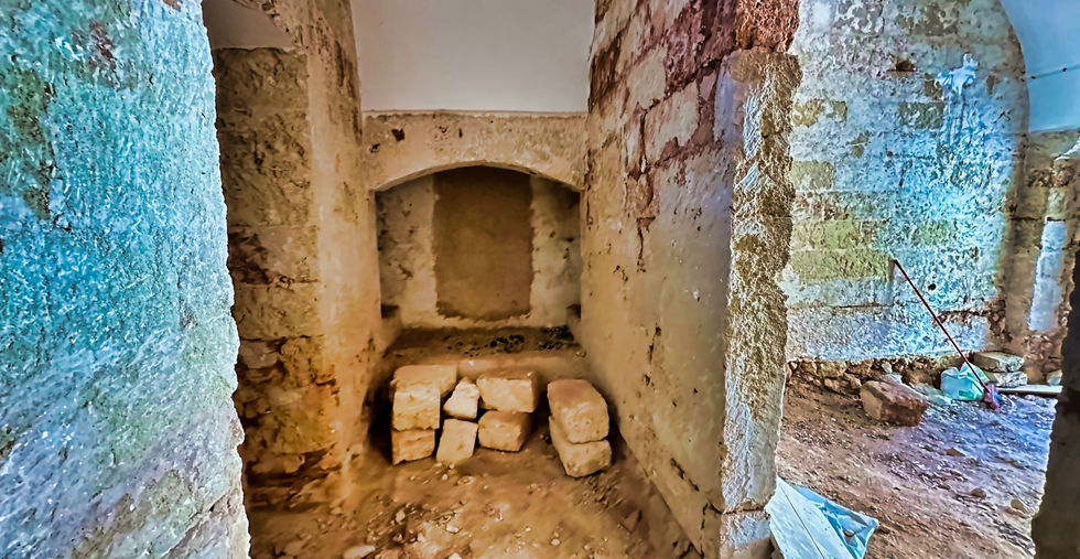 Dalla corte interna è possibile raggiungere ben tre unità abitative indipendenti, dislocate egregiamente su due livelli. La prima di esse fronteggia la porta di ingresso e si lascia apprezzare per la sua eleganza compositiva. Alla volta stellata che spinge verso l’alto, come lenzuolo bianco ricolmo di vento, si accompagna l’equilibrio dispositivo delle nicchie e delle porte sul versante di ponente, mentre a seguire un comodo disimpegno, caratterizzato da un antico camino in posizione ancillare, distribuisce il passo verso un interessante sottoscala e verso un ultimo volume voltato a stella, dove a primeggiare è un camino magicamente immerso in un sonno di pietra, sotto il presidio attento e materico di una nicchia che ha in sé la vocazione di raccogliere e custodire la memoria.
